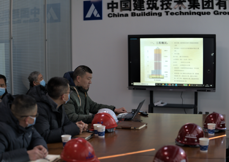 中技集團(tuán)第二工程分公司副總經(jīng)理韓玉文對鼎興大廈工程裝修項(xiàng)目概況和項(xiàng)目生產(chǎn)進(jìn)度情況進(jìn)行了匯報,中國建研院和中技集團(tuán)領(lǐng)導(dǎo)一行詳細(xì)了解了項(xiàng)目特色、施工進(jìn)度、安全管理及質(zhì)量管控情況,并對項(xiàng)目部目前的整體管理給予肯定,同時就項(xiàng)目建設(shè)、安全生產(chǎn)、疫情防控等重點(diǎn)工作提出要求。