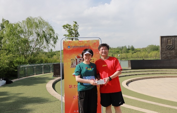 賽后,領(lǐng)導(dǎo)們?yōu)闃放芑顒觾?yōu)勝者頒發(fā)了獎品。