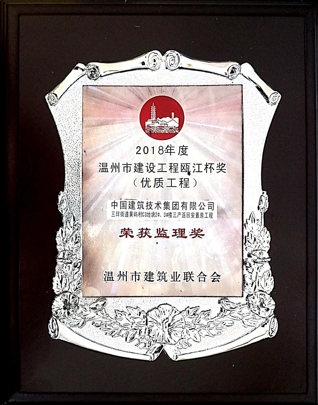 ? ? ? ?近日,溫州住建委、溫州市建筑業(yè)聯(lián)合會(huì)召開表彰大會(huì)。溫州分公司承攬的“溫州市三垟街道黃嶼村C3地塊2#3#樓三產(chǎn)返回安置房”工程監(jiān)理項(xiàng)目榮獲2018年度溫州市優(yōu)質(zhì)工程“甌江杯”獎(jiǎng)。?