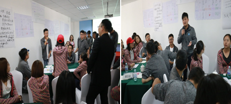 9月22日上午,在專業(yè)培訓(xùn)師的指導(dǎo)下,用貝爾賓團(tuán)隊(duì)角色理論測(cè)試每位員工的團(tuán)隊(duì)角色,結(jié)合該測(cè)試結(jié)果,進(jìn)行了一場(chǎng)充滿參與性、互動(dòng)性、實(shí)戰(zhàn)性、競(jìng)爭(zhēng)性的沙盤模擬訓(xùn)練。新員工們分組抽簽決定各自的所處的地形情況及資源狀況,通過小組合作產(chǎn)出產(chǎn)品并到統(tǒng)一的市場(chǎng)交易獲得效益,通過效益的多少等多重指標(biāo)衡量經(jīng)營的整體狀況。培訓(xùn)中,小組成員充分地展示出了當(dāng)代年輕人開闊的思維方式,會(huì)場(chǎng)熱鬧紛紛。他們思維活躍、分工有序,在充分分析內(nèi)外形勢(shì)的前提下,有效經(jīng)營,各小組均獲得了十分可觀的經(jīng)營效果,得到了培訓(xùn)團(tuán)隊(duì)的一致好評(píng),最后每個(gè)小組的精彩自我點(diǎn)評(píng)再次將培訓(xùn)推向高潮。會(huì)后大家意猶未盡,午餐時(shí)分依然在探討思路和方法。
