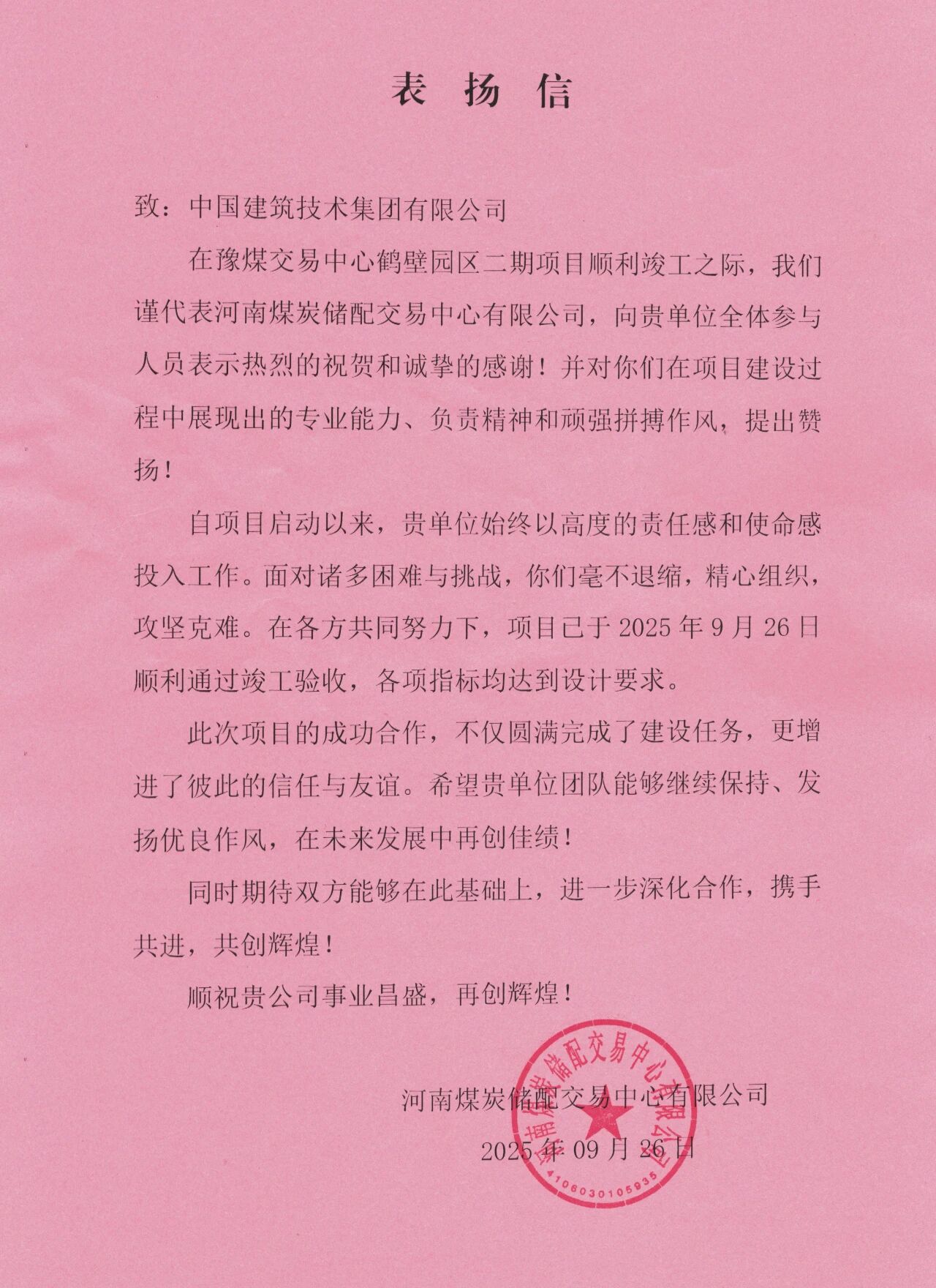 9月26日,由中國建技承建的河南省重點工程——豫煤交易中心鶴壁園區(qū)二期項目順利通過竣工驗收并正式投運。本項目于2023年11月25日啟動建設,2025年5月31日竣工。