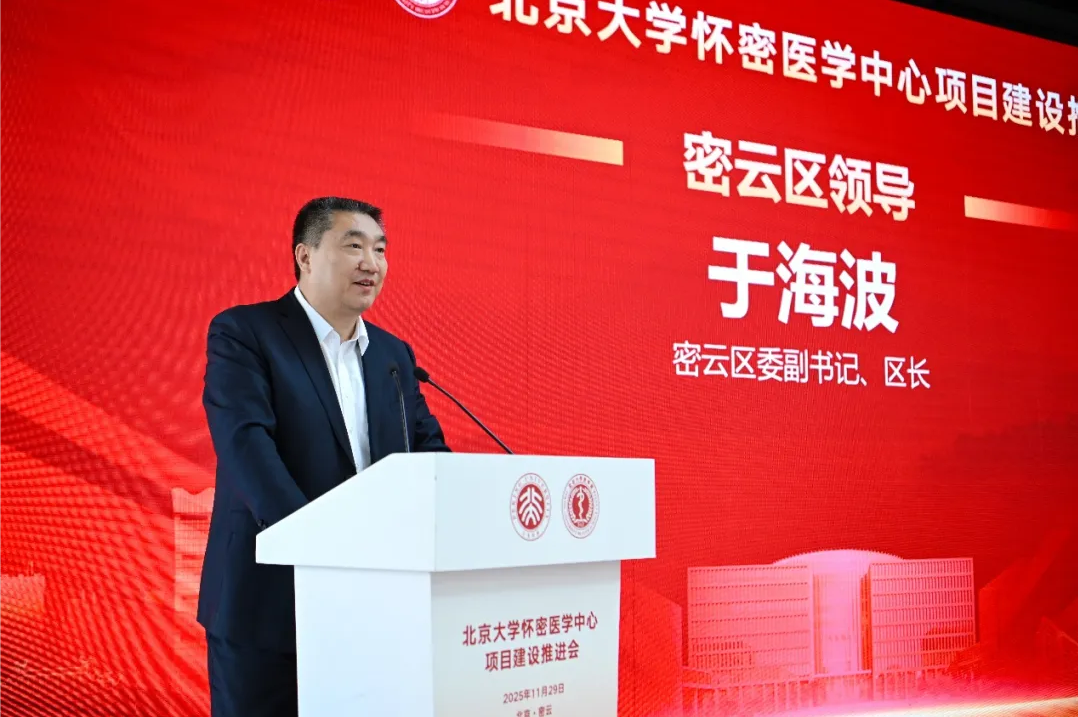 于海波在講話中表示,北京大學懷密醫(yī)學中心作為服務健康中國戰(zhàn)略與北京生命健康產(chǎn)業(yè)布局的關鍵載體。密云區(qū)將全力保障其一期項目在“十五五”期間建成投用,持續(xù)完善周邊設施與公共服務,為科研創(chuàng)新、人才培養(yǎng)與成果轉(zhuǎn)化提供堅實支撐。密云珍視與北京大學的合作,將以醫(yī)學中心為牽引,加快培育生命健康產(chǎn)業(yè),深化雙方合作,共同為推動首都高質(zhì)量發(fā)展與高水平科技自立自強貢獻力量。