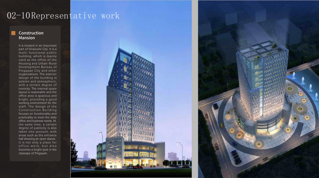 平泉市建設(shè)大廈在地標(biāo)性建筑設(shè)計(jì)中的重要實(shí)踐。他通過現(xiàn)代建筑語(yǔ)言與地域文化的結(jié)合,打造出一座兼具功能性與象征意義的城市地標(biāo),展現(xiàn)了其在公共建筑設(shè)計(jì)中的深厚造詣。(平泉市建設(shè)大廈)