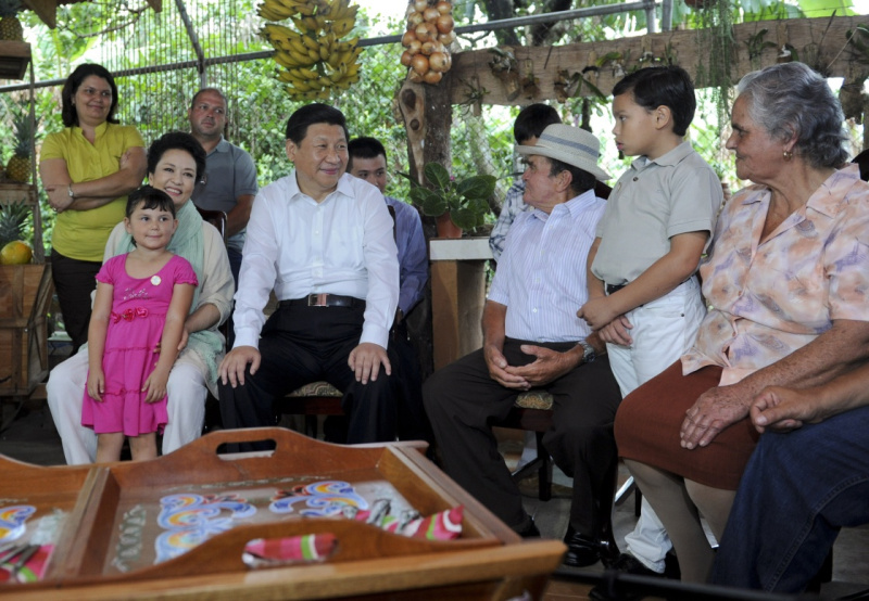 2013年6月3日,習(xí)近平和夫人彭麗媛走訪哥斯達(dá)黎加埃雷迪亞省圣多明哥小鎮(zhèn)農(nóng)戶(hù)薩莫拉一家,與薩莫拉一家人親切交流。