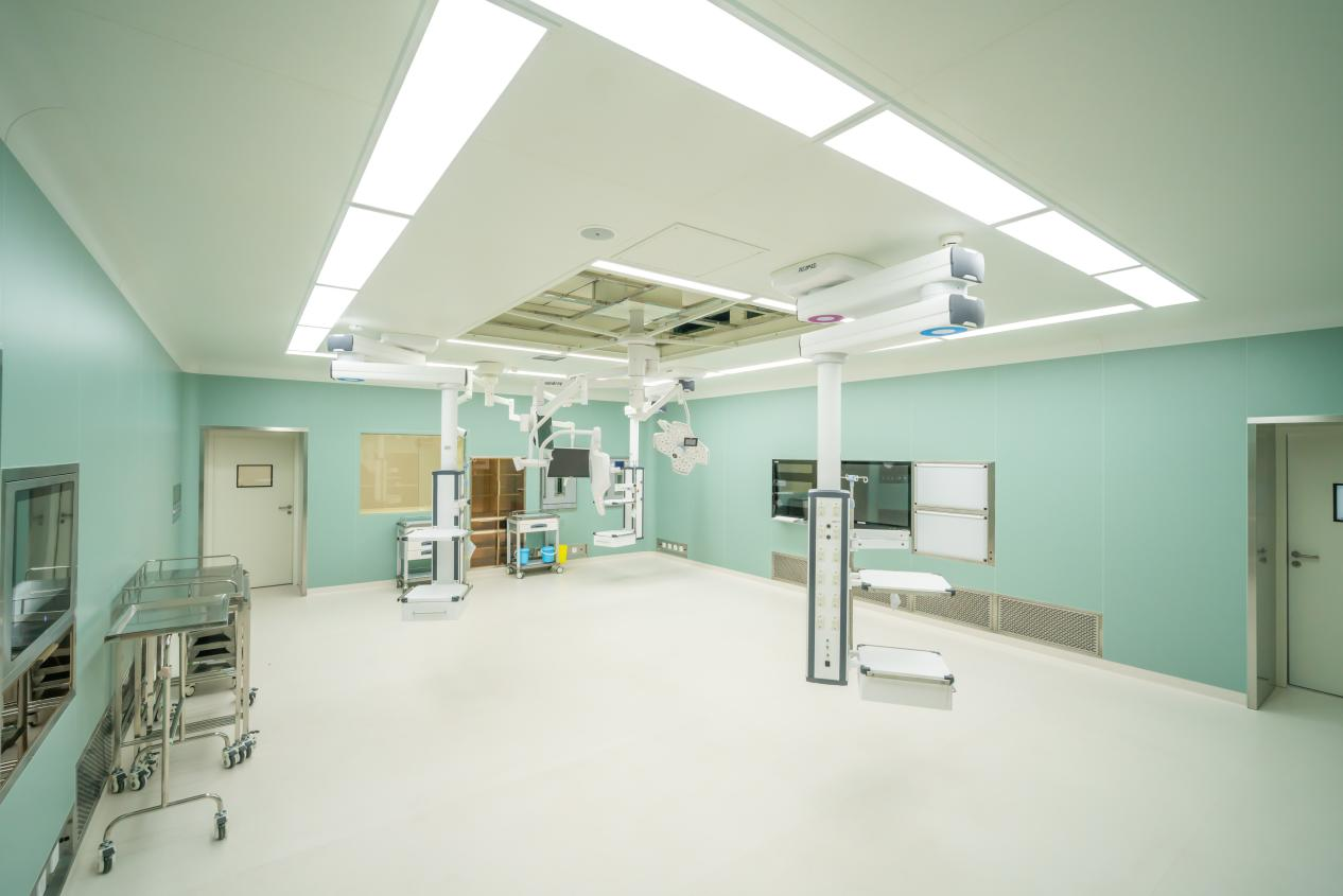 潔凈手術室(中心手術部、ICU及DSA凈化三個部分):潔凈中心手術部凈化工程位于大樓三層,設計范圍包括12間潔凈手術室,其中4間為I級潔凈手術室(包括1間復合手術室和2間防輻射手術室),以及8間Ⅲ級潔凈手術室(包含4間腔鏡手術室和1間正負壓手術室)。正負壓手術室能夠轉換為緊急負壓狀態(tài),以應對突發(fā)的衛(wèi)生事件。潔凈走廊及輔助用房的潔凈等級為十萬級,而污物走廊及輔助用房的潔凈等級為三十萬級。生活辦公區(qū)同樣位于該層。工程內容包括裝飾裝修、基本設施、凈化空調、電氣系統(tǒng)、給排水和數(shù)字化系統(tǒng)等配套工程。
