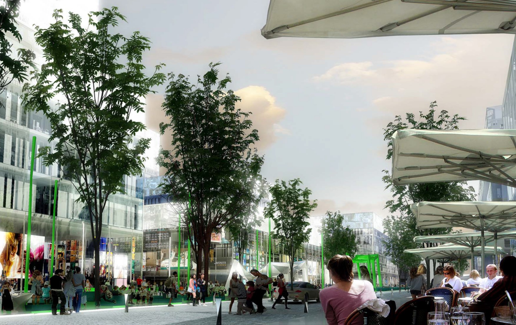 地下空間設(shè)置:地下空間由三個(gè)部分組成,分別為地下商業(yè)位于鄰近中央廣場和地鐵站的地塊,由地塊紅線分開并在地塊間以地下通道方式連接;底下停車庫設(shè)置在每個(gè)地塊下;為能夠連接到全部地塊,底下停車庫之間有連接隧道。