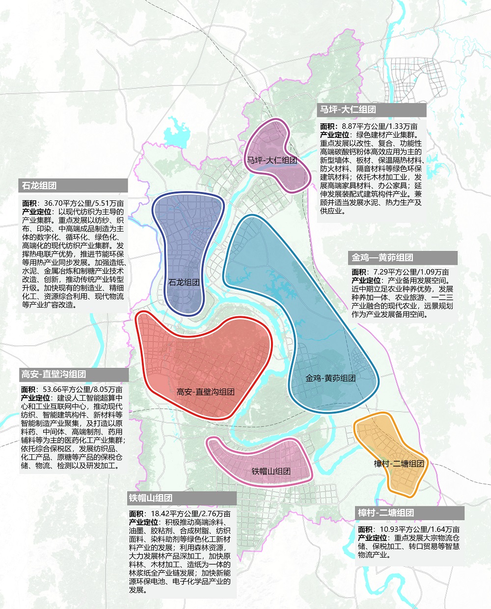 特色產(chǎn)業(yè)集群布局——綜合考慮自身優(yōu)勢(shì)資源、臨港產(chǎn)業(yè)基本形態(tài)、大灣區(qū)產(chǎn)業(yè)外溢、上位政策與規(guī)劃導(dǎo)向等影響因素的基礎(chǔ)上,三江口新區(qū)的產(chǎn)業(yè)選擇按照“灣區(qū)所需、來賓所長”和“來賓所缺、灣區(qū)所溢”的思路進(jìn)行取舍,重點(diǎn)打造綠色建材、現(xiàn)代紡織、醫(yī)藥化工、林漿紙一體化、新能源新材料、智慧物流六大產(chǎn)業(yè)集群。