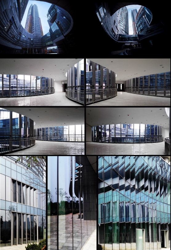 建筑空間設(shè)計(jì)以“自由流動(dòng)”構(gòu)筑了步行街、庭院及室內(nèi)空間體驗(yàn)的基本特征,連續(xù)塑造了引導(dǎo)漫步徐行、激發(fā)交流互動(dòng)的事件場(chǎng)所,不斷暗示著“伴水而生”的獨(dú)特環(huán)境感知。而建筑立面設(shè)計(jì)以玻璃這一常規(guī)材料的非常規(guī)組合應(yīng)用,探討了“環(huán)境影像”積極介入并與實(shí)體環(huán)境互動(dòng)對(duì)話的可能性。反射所形成的“虛線化的環(huán)境影像”被重新植入到連續(xù)的物質(zhì)環(huán)境之中,以其超現(xiàn)實(shí)的陌生感激發(fā)了人們對(duì)習(xí)以為常、視而不見(jiàn)的自然環(huán)境的重新關(guān)注與感知。
