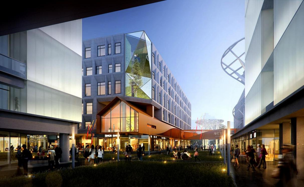 針對項目的所處區(qū)域環(huán)境、既有建筑群空間與土建現(xiàn)狀等現(xiàn)實挑戰(zhàn),規(guī)劃設(shè)計提出打造集住宿、工作、社交、休閑于一體的商務(wù)生態(tài)閉環(huán)策略。通過連通首層商業(yè)東線、塑造小鎮(zhèn)中心、加建空中連廊、改建局部空間等方式,將首層商業(yè)社區(qū)、二層酒店社區(qū)與上層商務(wù)辦公社區(qū)多業(yè)態(tài)由平面復合街區(qū)轉(zhuǎn)向為立體復合街區(qū),以構(gòu)建更具溫度感的生活情景,加強侵入式的極致體驗,提升服務(wù)資源的共享品質(zhì),創(chuàng)造多樣化的空間視點,引發(fā)不同視角下對生活的獨特感悟。