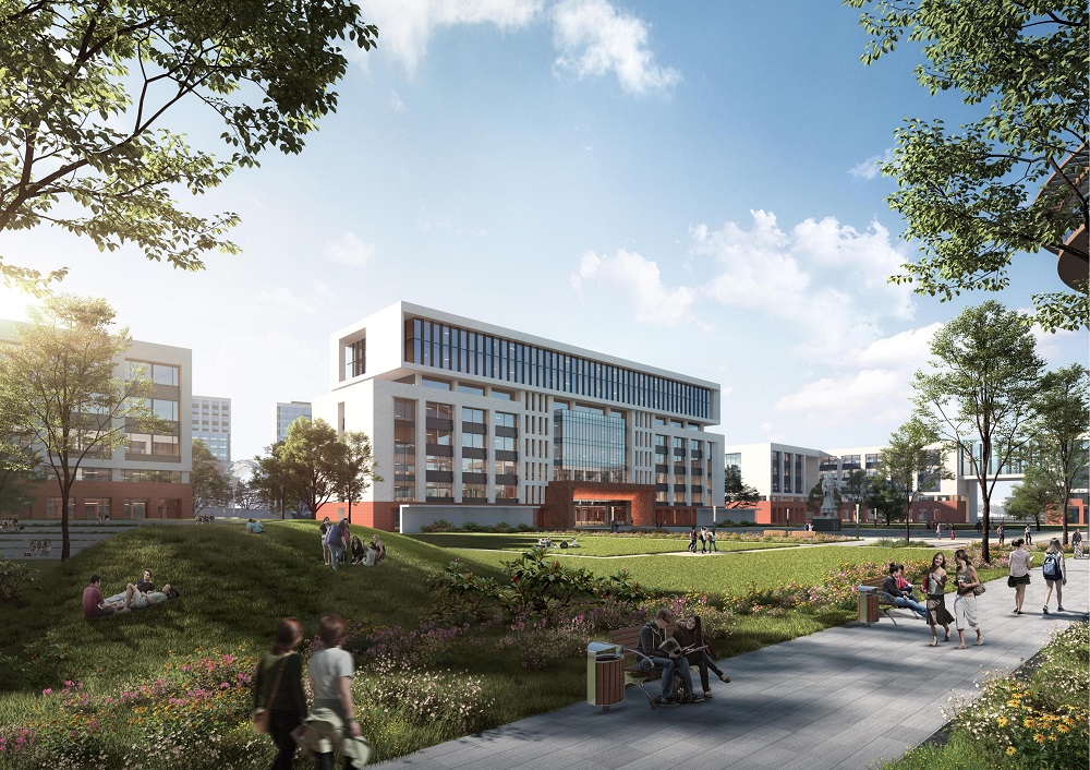 設(shè)計規(guī)劃在校學(xué)生10000人,新校區(qū)總體規(guī)劃以建設(shè)全國一流高等職業(yè)院校校園為目標,塑造沿空間主軸生長、沿生活水軸展開的優(yōu)美校園空間形態(tài)。
