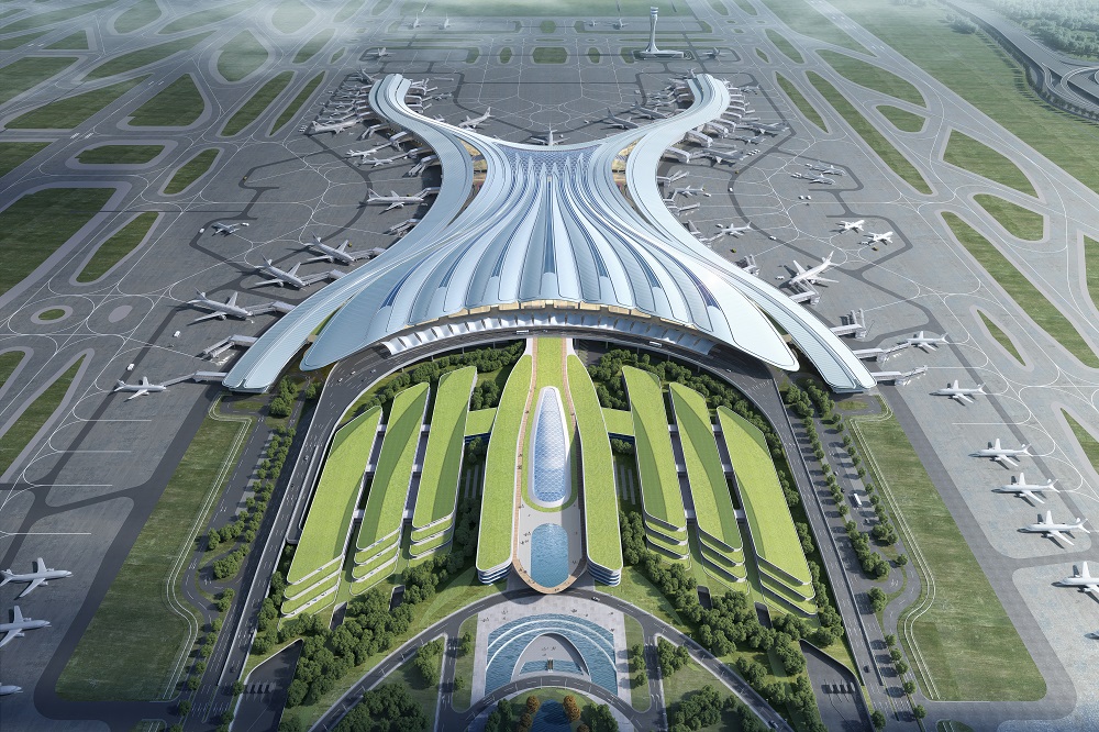 廣州白云國(guó)際機(jī)場(chǎng)三期擴(kuò)建工程T3航站樓采用集中式主樓+指廊式構(gòu)型,由主樓、東南指廊、西南指廊、東北指廊、西北指廊、東指廊及西指廊組成,航站樓總建筑面積為49.86萬(wàn)平方米,建筑高度42.95米,整體南北方向長(zhǎng)970米,東西寬592米。